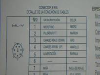1 Rojo, 2Negro, 3Marron, 4Amarillo, 5Verde, 6 N/C, 7 Malla, 8 Blanco.